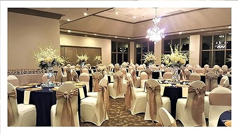 You are provided with a variety of colors and styles of chair covers that can be used to fit the occasions. With a simple tuck to the corners covers can accomodate round backed chairs as shown in photos. 100pcs wedding chair decorations stretch chair bows and sashes for party ceremony reception banquet spandex chair covers slipcovers (100, black) 949 made of spandex, this chair cover sash has a buckle with rhinestones around, giving it an appealing look. 10/50/100 pcs organza chair cover sash bow wedding party reception banquet decor. Save $11.50 (24%) starting at $35.49.